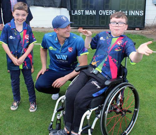 Below: Thomas and Jacob meet Kent all-rounder Joe Denly after he scored 150* and took 4 wickets in the match against Glamorgan.