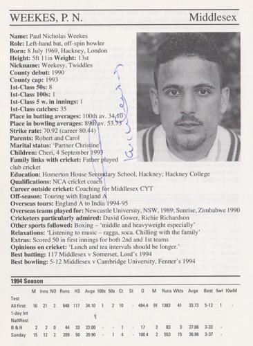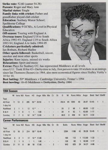 Signed 1995 Cricketers Who's Who bio entry & portrait pic.