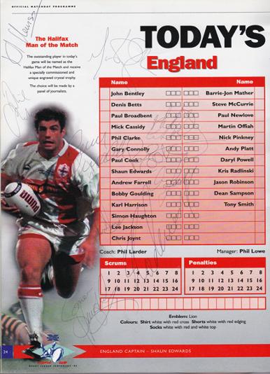 ENGLAND: Andy Farrell, Martin Offiah, Simon Haughton, Phil Clarke, Gary Connolly, Paul Cook & 2 unknown.