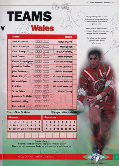 WALES: Phil Ford, Clive Griffiths, Paul Moriarty, Adrian Hadley, Mark Jones, Kelvin Skerrett, Keiron Cunningham, Kevin Ellis, Dean Busby & 1 unknown.